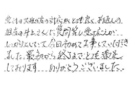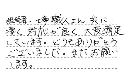 担当者・工事職人さん共に、凄く対応が良く、大変満足しています。どうもありがとうございました。またお願いします。
