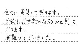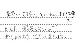 素早い対応、ていねいな仕事で、とても満足しています。ありがとうございました。
