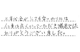 工事代金がとても安いわりには、仕事は良くやっていただき、満足でした。ありがとうございました。