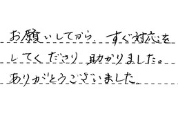 お願いしてから、すぐ対応をしてくださり、助かりました。ありがとうございました。