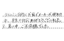 タイミング的にお盆で、メーカーが休みの中、早急の対応、ありがとうございました。又、暑い中、ご苦労様でした。