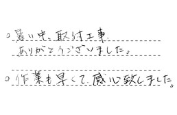 暑い中、取付工事ありがとうございました。作業も早くて感心致しました。