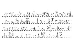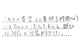 こちらの要望(工事終了時間など)にもちゃんとこたえてもらえ、親切な対応が印象的でした。