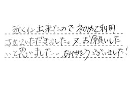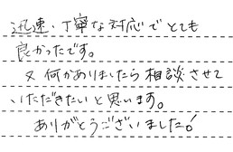 迅速・丁寧な対応でとても良かったです。又、何かありましたら相談させていただきたいと思います。ありがとうございました!