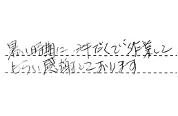 対応・印象良く、又、段取り・進行がスムーズで、短時間で作業をしていただいたことに感謝しています。