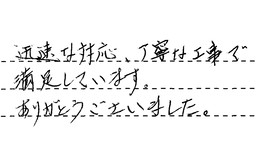 迅速な対応、丁寧な工事で満足しています。ありがとうございました。
