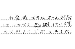 お盆前なのに、さっと対応していただき、感謝しています。ありがとうございました。