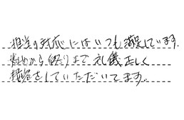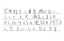 担当の対応には、いつも満足しています。始めから終りまで、礼儀正しく接客をしていただいています。