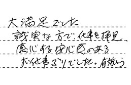 大満足でした。誠実な方で、仕事を拝見、感心する安心感のあるお仕事ぶりでした。有難う。