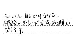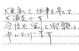 大変安くて、仕事も早くて、大満足です。今後共、宜しく御願い申し上げます。
