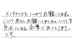 メンテナンスをしっかりお願いします。じっくり考えてお願いしました。いつでも身近にある企業であってほしいです。