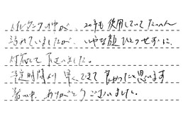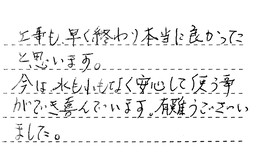 工事も早く終わり、本当に良かったと思います。今は水もれもなく、安心して使う事ができ、喜んでいます。有難うございました。