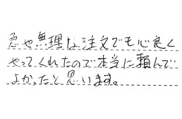 急な無理な注文でも、快くやってくれたので、本当に頼んでよかったと思います。