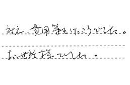 こちらの都合で、時間の無理も快く対応していただいた事に感謝しています。暑い中、有りがとうございました。御苦労様でした…