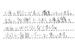 工事の対応が良く、満足しています。店長の折衝もうまく、工事金額も他社と比べ安くなりました。次回も相談したいと思います。