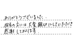 ありがとうございました。担当の方には、大変親切にしていただき、感謝しております。