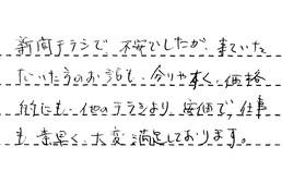 新聞チラシで不安でしたが、来ていただいた方のお話も分りやすく、価格的にも他のチラシより安価で、仕事も素早く、大変満足しております。