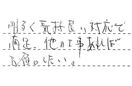 明るく気持良い対応で満足。他の工事あれば、お願いしたい。