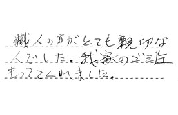 職人の方がとても親切な人でした。我家のゴミ迄もっていってくれました。