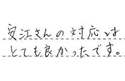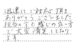 迅速にご対応頂き、ありがとうございました。担当の方も感じの良い方で、大変満足しております。