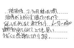 使用後2・3ヶ月経った頃、温度が上がらず困っていたのでTelした所、すぐ来て下さり、メーカーの方に連絡を入れてくれて、とても早い対応に感謝しております。