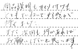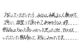 商品説明も取り付けも、とてもていねいで、好感が持てました。また次回も何かあれば、お願いしたいと思います。