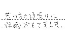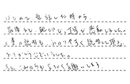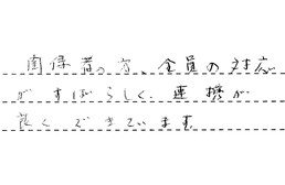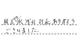 はじめて電話した時から最後まで、親切で丁寧で、感動しました。工事の説明も、わかりやすく説明して頂き、ありがとうございました。またこれからも、よろしくお願いします。