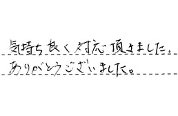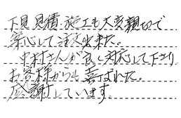 下見・見積・施工も大変親切で、安心して注文出来た。中村さんが良く対応して下さり、お客様からも喜ばれた。感謝しています。