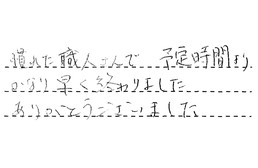 慣れた職人さんで、予定時間よりかなり早く終わりました。ありがとうございました。