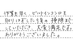 作業も早く、ビルトインコンロを取りはずした後の掃除までしていただき、大変満足です。ありがとうございました。
