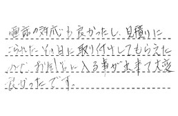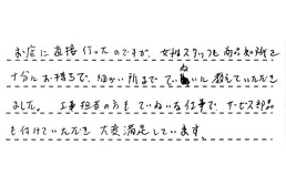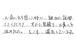 お店に立ち寄った時に、親切に説明してくださり、すぐに見積り、工事へと進みました。とても満足しています。