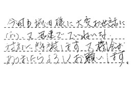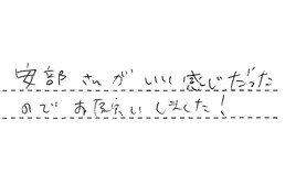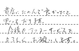 貴店にたのんで良かったと思っております。今後のアフターサービスをよろしくお願いします。