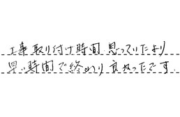 工事取り付け時間、思っていたより早い時間で終わり、良かったです。