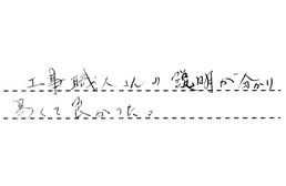 話やすい方でしたので、聞きたい事など、話を進める事ができました。ありがとうございました。
