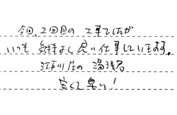 見積りの段階から、とても良い印象でした。工事日も決まっていたのですが、こちらの都合で、当日予定変更を申し出たのですが、快く承諾していただき、本当に助かりました。トイレの仕上がりも、とても気に入ってます。ありがとうございました。
