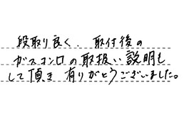 段取り良く、取付後のガスコンロの取扱い説明もして頂き、有りがとうございました。