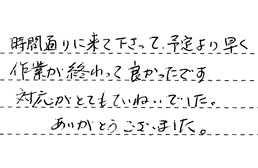 時間通りに来て下さって、予定より早く作業が終わって良かったです。対応がとてもていねいでした。ありがとうございました。