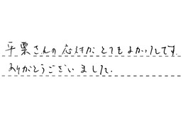 平栗さんの応対がとてもよかったです。ありがとうございました。