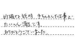 適確な説明、きちんとした工事で、たいへん満足です。ありがとうございました。