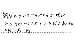 見つもりにもすぐに対応して下さり、とても助かりました。ありがとうございました。