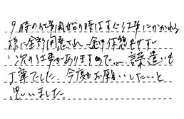 当初の工事予定日が都合悪くなり、変更依頼にも快く対応して頂きました。ありがとうございました。