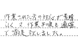 作業された方の対応が素晴らしく、又、作業手順も適確で、満足致しました。