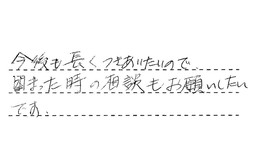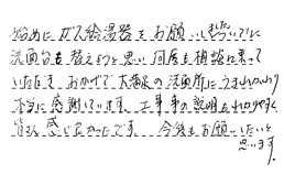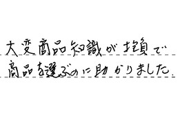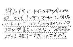 訪問の際に、トイレの打ち合わせの時、とても1つずつていねいに説明していただきまして、分かりやすかったです。さすが営業マンですね。お客様に対する接客・対応は大事です。