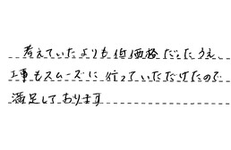 考えていたよりも低価格だったうえ、工事もスムーズに行っていただけたので、満足しております。