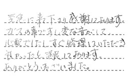 至急に来て下さり、感謝しております。ガスの事ですし、変な音がして心配でしたし、すぐ修理していただき、良かったと満足しております。ありがとうございました。