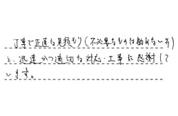 丁寧で正直な見積もり(不必要なものは勧めない等)と、迅速かつ適切な対応・工事に感謝しています。