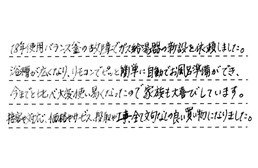 18年使用バランス釜の故障で、ガス給湯器の新設を依頼しました。浴槽が広くなり、リモコンでビッと簡単に、自動でお風呂準備ができ、今までと比べ、大変使い易くなったので、家族も大喜びしています。接客や対応、価格やサービス、段取や工事、全て文句なしの良い買い物になりました。
