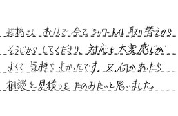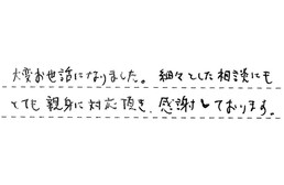 大変お世話になりました。細々とした相談にも、とても親身に対応頂き、感謝しております。