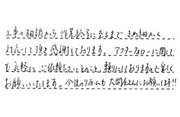 工事の相談から、作業終了に至るまで、きめ細かく対応して頂き、感謝しております。アフターフォローに関しても、気軽にご依頼くださいとのこと。頼りにしておりますので、宜しくお願いいたします。今後のリフォームも、大問屋さんにお願いします!!