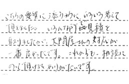 こちらの要望に沿うように、いろいろ考えて頂きました。いろんな所で見積を取りましたが、大問屋さんの対応が一番良かったです。これからも、相談にのって頂けると、ありがたいです。